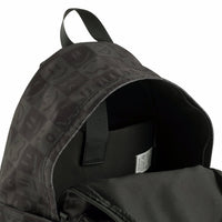 Black and grey backpack with a check pattern. It has a padded pocket for a computer or tablet, a zipped pocket at the front, bottle pockets on the sides, and padded straps. The adjustable chest strap and shoulder straps ensures good comfort and weight distribution. Dimensions: 30 x 17 x 42. Volume: 21L.