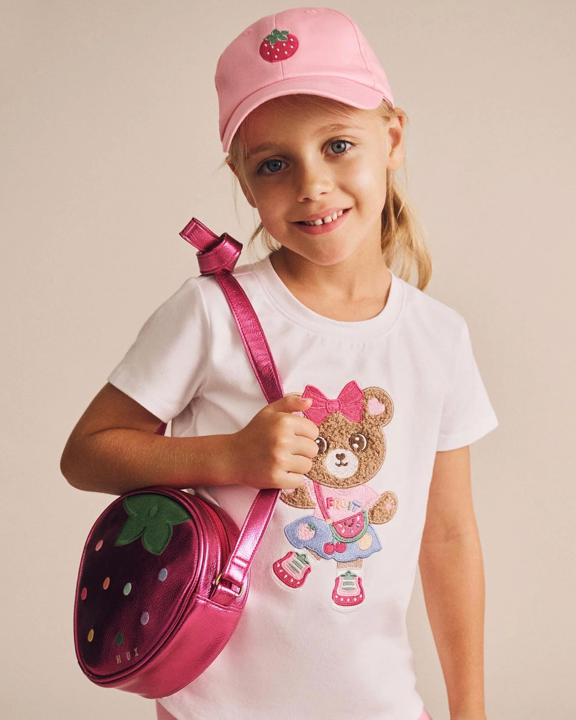 THE cap for cool kids. Sporty pink twill cap featuring a cute embroidered juicy strawberry logo and an adjustable velcro back strap for comfy fits.