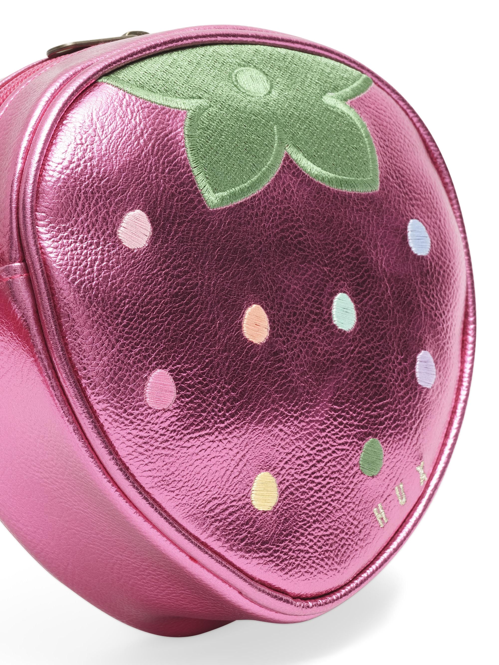 The best handbag to stash snacks, pebbles or any other playground treasures. Features a retro strawberry cross shoulder design. Includes "Hux Bux" play money inside.