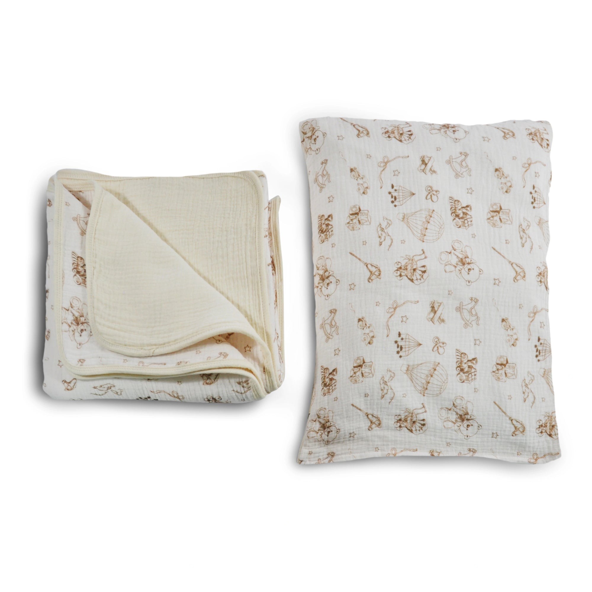Vintage Bedding Safari Set Double-Sided Blanket & Pillow Organic Cotton