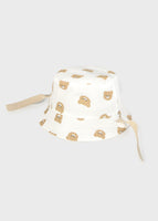 A soft, reversible ceramic-toned hat with a sweet bear design and ear flaps, made from breathable fabric for delicate skin.
