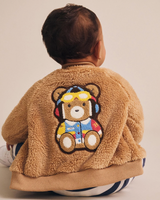 A soft and furry aviator jacket perfect for layering on colder days. Made with extra furry fabric, this cool weather must-have feels like a hug you can wear. It has a zip for easy dressing and our pilot Huxbear embroidery, for strength and courage.