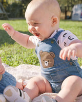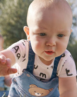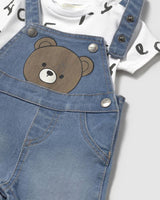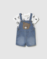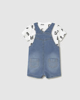 This newborn set combines classic denim dungarees with a soft, coordinating short-sleeve T-shirt, crafted from lightweight, durable fabric for everyday comfort.