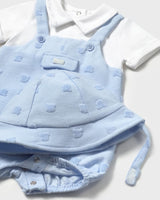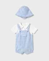 Newborn Simulated Dungaree Romper with Hat (Sky):