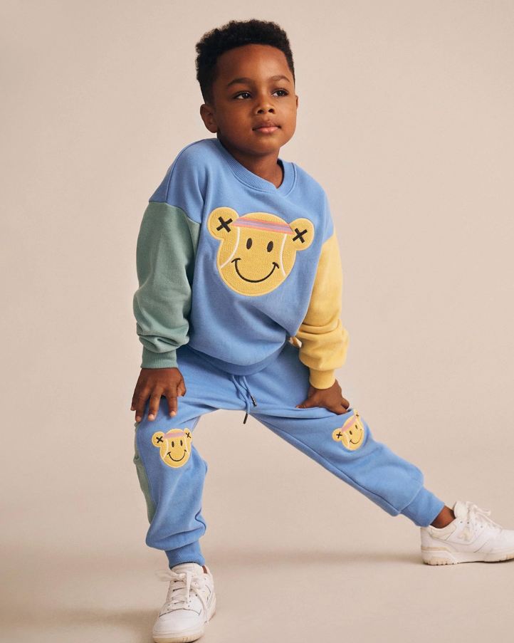 This cosy, retro-style fleece set is made from the dreamiest organic cotton that feels like getting a big hug from your best friend. It features a tummy-sized fuzzy tennis bear embroidery and comes in a cool block colour design. Baby sizes include stainless steel back snaps for easy dressing.