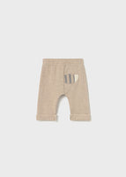 Pants for newborn baby boy with maximum comfort. Elasticated waistband with adjustable drawstring. Decorative elements: decorative applique, embroidery.