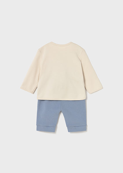 Long sleeved Sweatshirt for newborn baby boy. Round neckline. Snap button fastening on the shoulder to allow the garment to be put on easily. Decorative elements: decorative applique, embroidery.