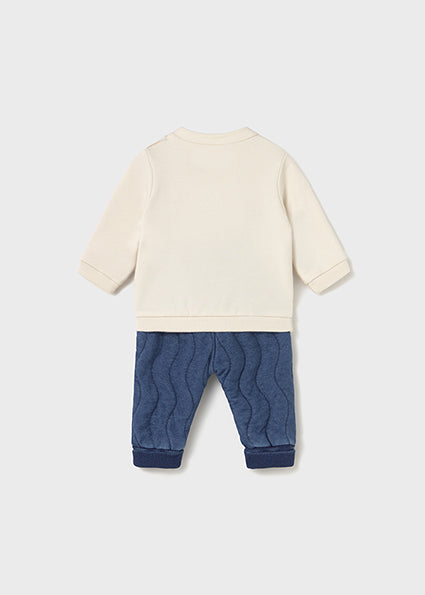 Matching sweatshirt and pants set for newborn baby boy.