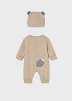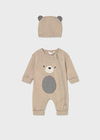 Long sleeved One-Piece for newborn baby boy. Round neckline. Zipper closure. Knitted fabric, soft and pleasant to the touch. Decorative elements: embroidery.