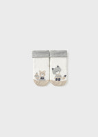 Contains organic cotton. Non-slip socks for newborn baby boy.