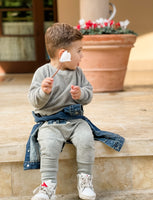 Unisex Cotton Terry Pant featuring knee & elbow patches design, ribbed cuffs & elasticated Hem to keep the warmth inside. The soft piles of yarn on the inside of the fabric will provide your child with comfort and luxury. Available in 5 different sizes ranging from 6 months to 3 years old.