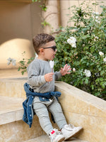 Unisex Cotton Terry Pant featuring knee & elbow patches design, ribbed cuffs & elasticated Hem to keep the warmth inside. The soft piles of yarn on the inside of the fabric will provide your child with comfort and luxury. Available in 5 different sizes ranging from 6 months to 3 years old.