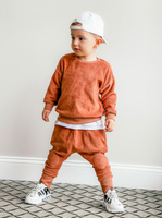 • Long sleeve crewneck Kids sweatshirt made of 100% Organic cotton Terry in Sage Green color.