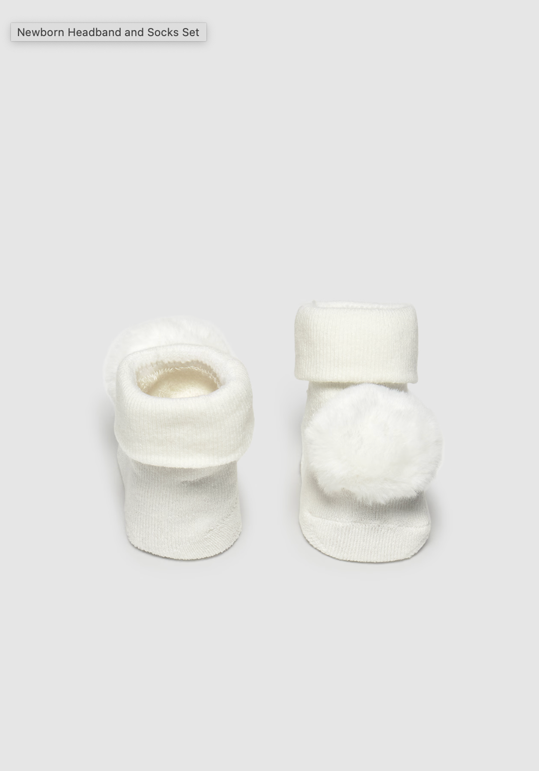 Socks for newborn baby girl. A perfect accessory to complete your look, giving it a different touch. Decorative elements: pompom.