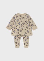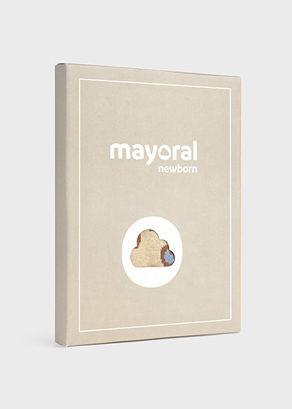 Long sleeved Dress for newborn baby girl. Round neckline. Button fastenings down the back to allow the garment to be put on and taken off easily. Knitted fabric, soft and pleasant to the touch. Gathered design. Jacquard stitch designs.