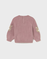 Long sleeved Sweater for baby. Round neckline. Button fastenings down the back to allow the garment to be put on and taken off easily. Intarsia woven design technique.