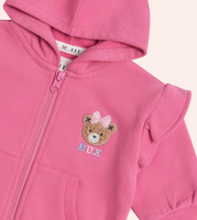 This 'goes with everything' hoodie is an everyday essential. Made from incredibly cosy cotton terry in a dreamy berry pink hue, it has an oversized slouchy fit, a cherry embroidery and handy pockets perfect for stashing snacks in.