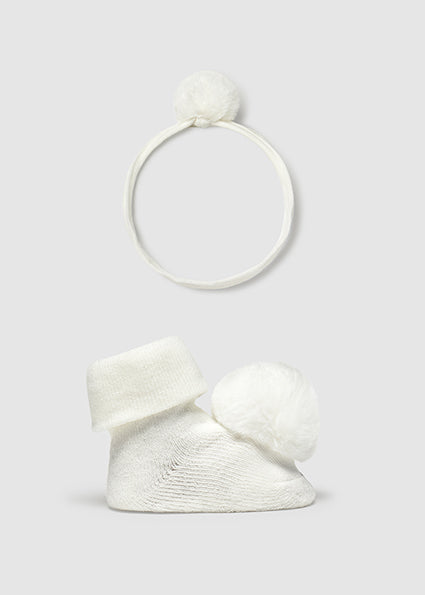 Socks for newborn baby girl. A perfect accessory to complete your look, giving it a different touch. Decorative elements: pompom.