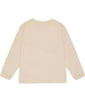 Off-white top in organic cotton with long sleeves, round neckline, ribbed trim at the neckline and sleeves. It has a loose fit and a printed design on the front. The print features three different balls from three different sports, with the text "World Play" above them.