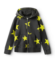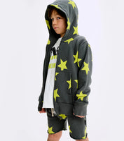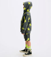 if you are what you say you are, a superstar – then show it. This graphite hoodie is a nununu classic with an all-over star print, roomy kangaroo side pockets, and thumbholes that make this piece cozy, comfortable, and cool. Wear your stardom on your sleeve