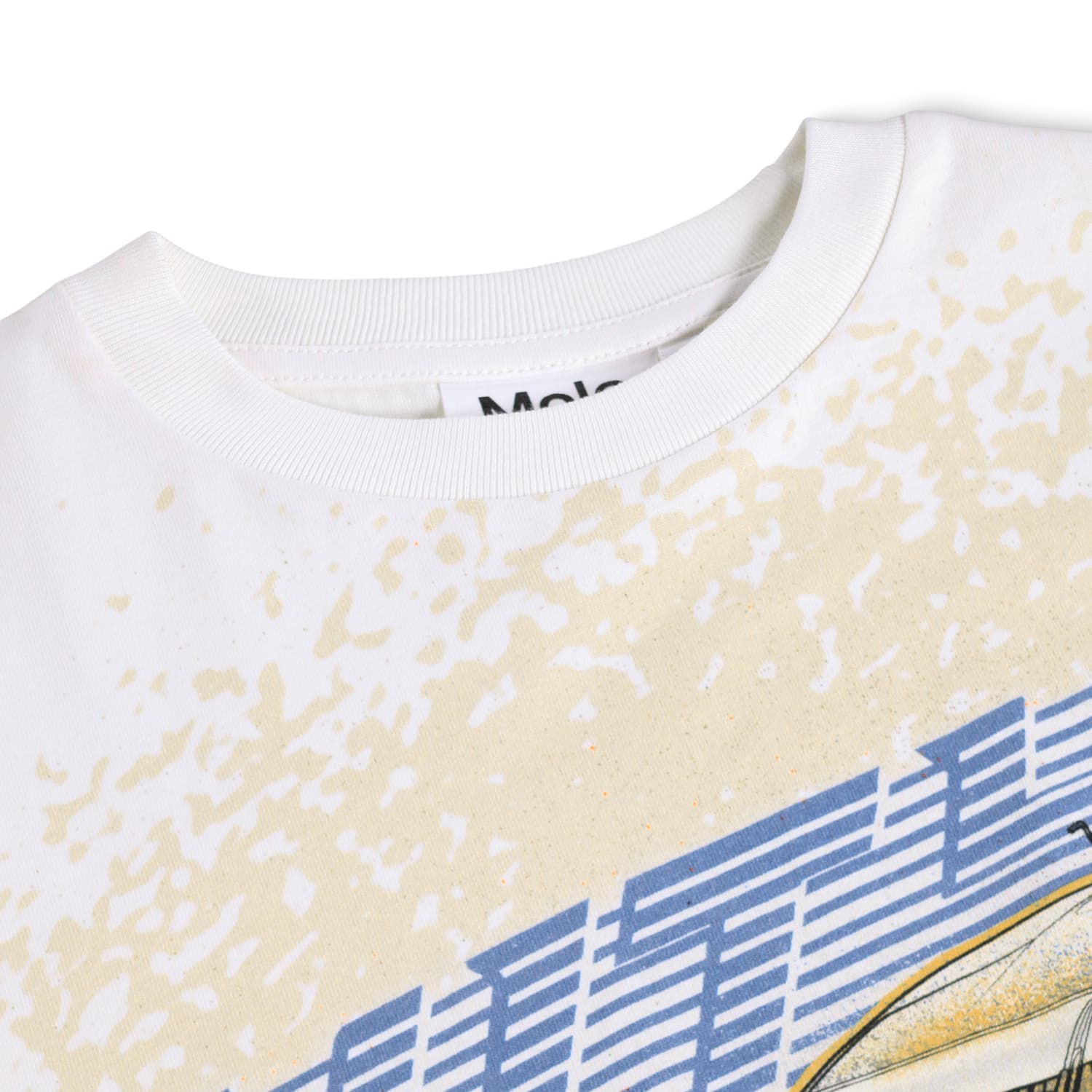Road is a white t-shirt with a race car print on the front.This Molo product is GOTS Organic certified by Ecocert Greenlife, License no. 197496.