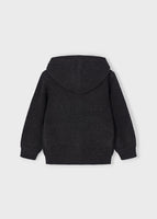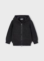 Long sleeved Woven knit jacket for boys. Hooded collar. Front, central zip fastening. Functional front pockets.