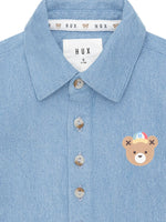 The perfect short sleeve button down shirt. In a classic chambray blue made from beautiful cotton with a relaxed casual fit and point collar. A timeless style, featuring a cute Huxbear embroidery on the left chest.