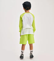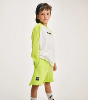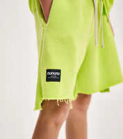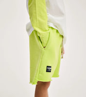 Everything in life needs balance. Except these epic shorts. They’re a gender neutral cut made of extremly soft hot lime french terry. To throw off the equilibrium, the raw bottom hems got a little trim in the front like a mullet for the knees. Of course, they’ve got side pockets for sticking hands in when playing it cool and a stretchy waistband to ensure they always stay up. Naturally, the tag rides on the outside so we can claim this iconic look.