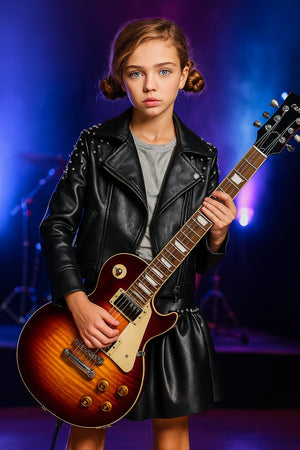 Little l Tween Girl’s Vegan Leather Rhinestone Moto Jacket