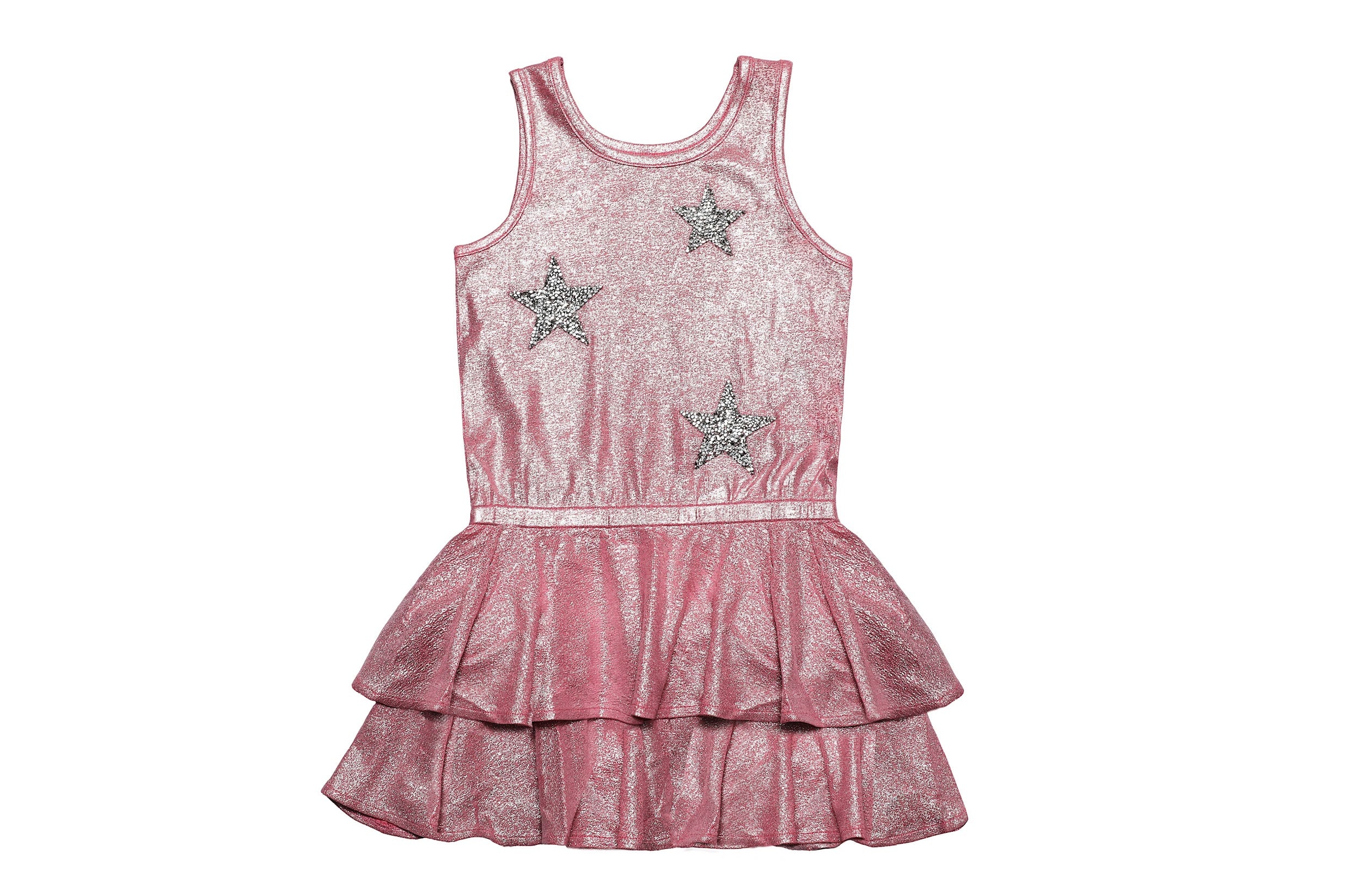 Pink Metallic Dress with Stars Patches