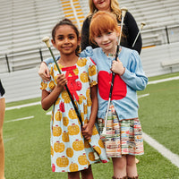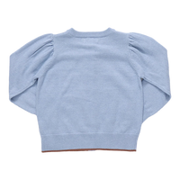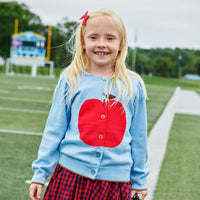 Back to School means new teachers, new friends and new activities. You little will feel confident branching out in our conversation starter Girls Contance Sweater. This perfect weight cardigan features a soft gathered puff shoulder, contrast tipping at the neck, sleeve and hem and an sparkly glitter button front closure. Available in Light Blue Apple and Go Team!