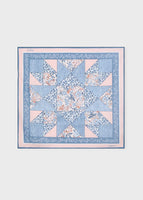 This set features a boxy-fit, short-sleeved t-shirt in a soft cream hue, accented with a delicate blue horseshoe graphic and "Born lucky" script. Completing the look is a versatile, multi-patterned bandana in shades of denim blue and dusty pink, featuring intricate floral and paisley prints.
