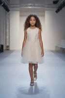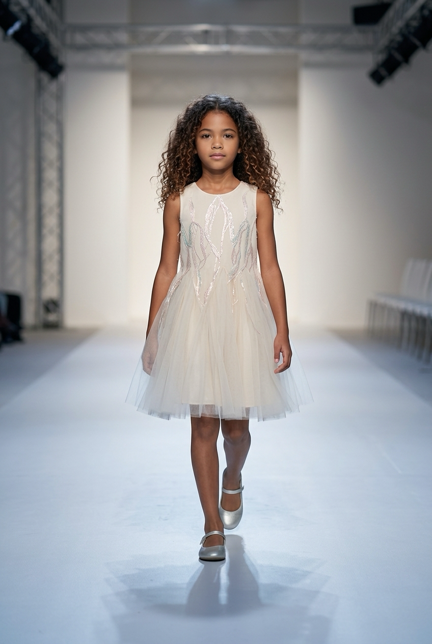 A special occasion, beige color to dress with sequent details. Cotton layer