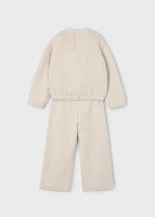 Two piece tracksuit with sweatshirt and pants for girls.Long sleeved Sweatshirt for girls. Round neckline. Back snap closure. Textile exterior with quilted effect.Pants for girls. Elastic waistband. Sleek design.