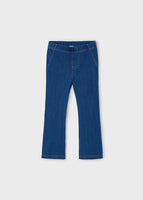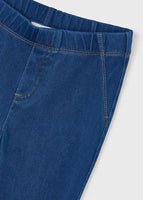 Leggings for girls, tight cut at hip and knee and flared hem. Normal fit. Elastic waistband. Pleated design. Mock, decorative front pockets.