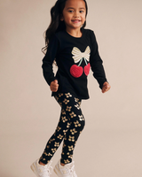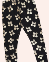 Cartwheel-worthy leggings. Made from soft organic cotton jersey, they feature our custom gold foil cherry pie print. The soft stretchy waistband stays up (even mid-wheel) and keeps little tummies comfy all day long. Ideal for everyday wear.