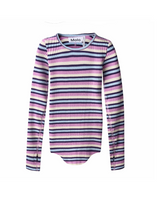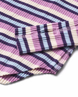 Long-sleeved striped top made of stretchy, organic cotton rib with a close-fitting cut, a round neckline and raw edges on both sleeves with thumb holes. Additionally, the top has a vertical seam down the middle of the back and raw, rounded edge at the waist.