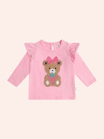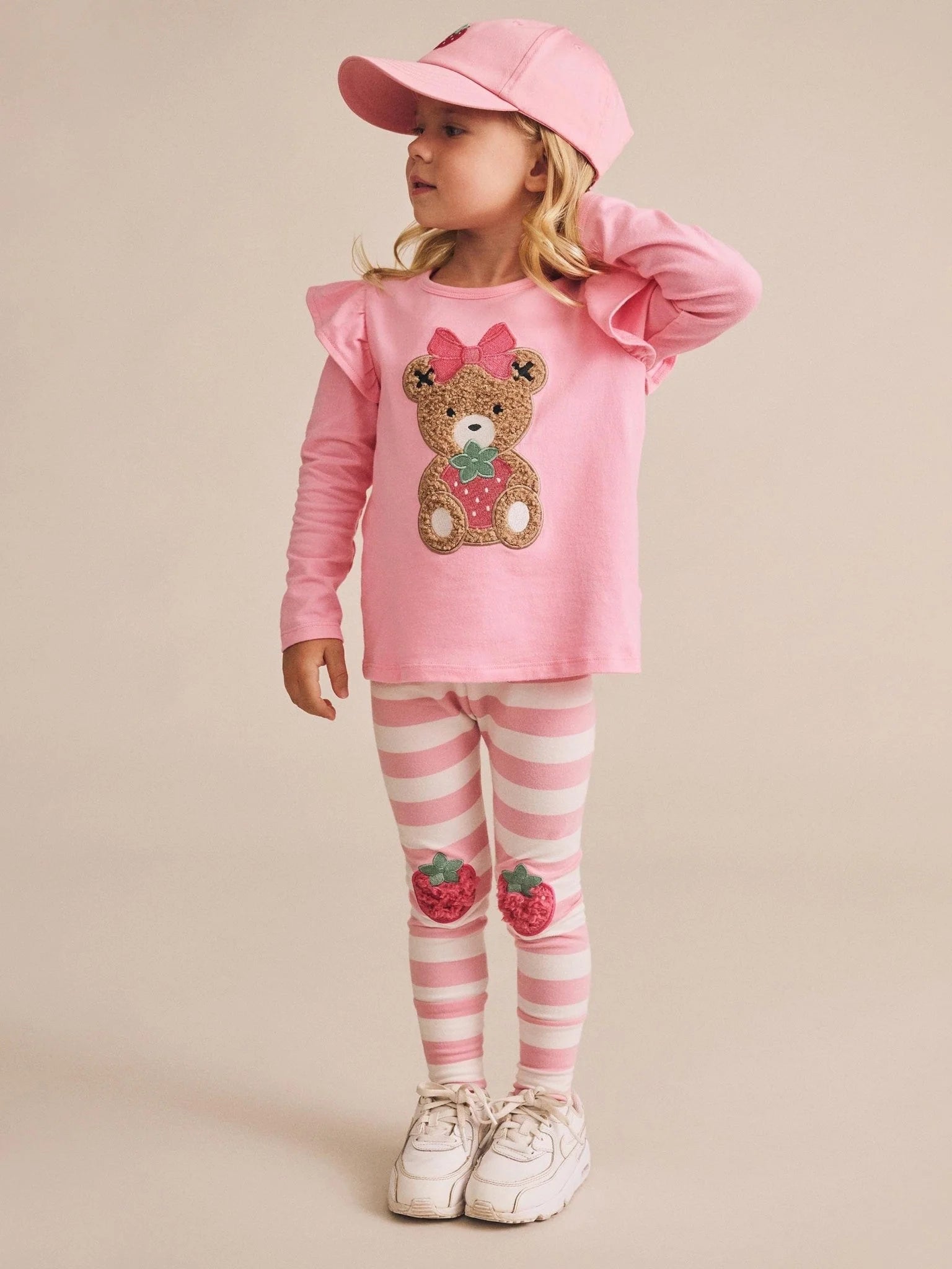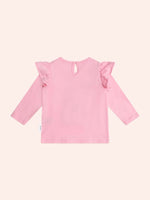 The perfect frill sleeve top, but with a sweet strawberry twist. Made from buttery-soft organic cotton in a strawberry pink hue and features a strawberry Huxette embroidered on the tummy.