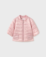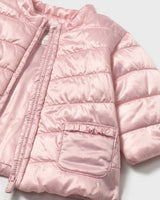 This newborn light padded jacket in soft baby pink is perfect for keeping your little one warm and cozy.