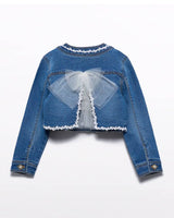 Girl Denim Jacket With Tulle Bow Blue Indigo
