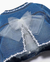 Made from high-quality denim, it features a charming tulle bow detail on the back, adding a touch of elegance.