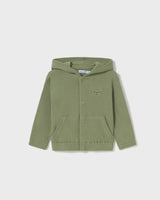 This soft sage-green hooded sweatshirt is crafted from cozy, breathable fabric, perfect for keeping little ones warm and snug.