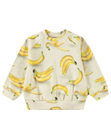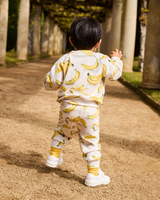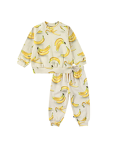 Bright and fun children's sweatshirt and joggers set with an eye-catching banana print on a soft cream base.