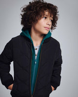 The BX Bomber Jacket in Black is the perfect mix of cool and functional for your little one. Crafted from water-resistant material, it keeps them dry and stylish on those drizzly days. The bold green hood adds a fun pop of color, while the sleek zipper makes it easy to zip up and go. Whether they’re off to school, the park, or on a weekend adventure, this jacket offers the versatility to pair with almost anything. With its rugged design and cozy fit, it’s the jacket your kid will never want to take off—rain or shine!