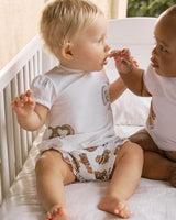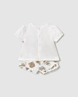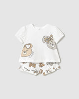 This delightful set features a soft, printed T-shirt paired with coordinating shorts, designed for newborns up to 18 months. Crafted from high-quality materials, it ensures both comfort and style for your little one. The playful design adds a touch of charm, making it perfect for everyday wear or special occasions. Easy to care for and gentle on delicate skin, this set is a versatile addition to any baby's wardrobe.