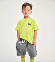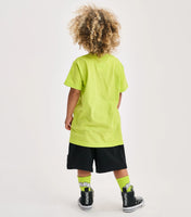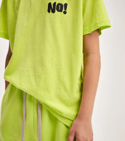 This fit is way too cool not to own. It’s a gender neutral cut made of soft hot lime single cotton with custom deconstruction to give it that lived-in look. Your kid’s favorite word is exclaimed in a video game style font with lots of sharp corners & edges. Because they’re rock solid at everything they do and fearless in everything they say. Especially when it’s a no after being asked to let that screen go!