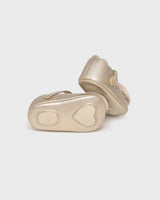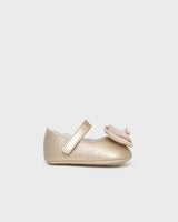 Mary Jane style shoes for newborn baby girl, a classic and timeless style to go with elegant outfits. Leather effect outer material. Lightweight and soft sole. Adjustable velcro strap which guarantees a perfect fit. Decorative floral applique.