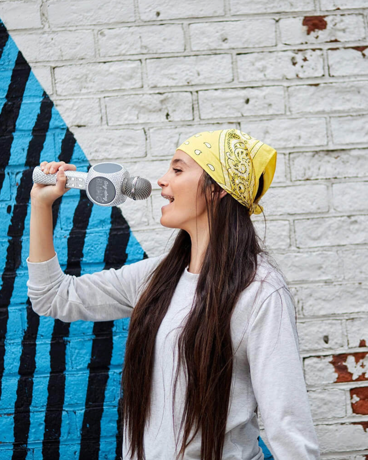 Wireless microphone, and Bluetooth speaker that connects effortlessly to your smartphone, or tablet, the Sing Along Mic is compatible with android and Apple operating systems.