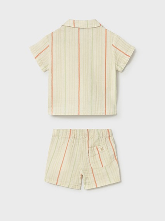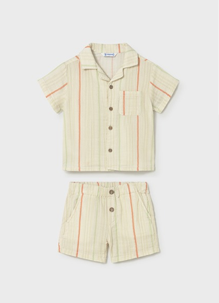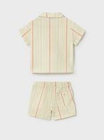 Upgrade his summer wardrobe with this breezy, vintage-inspired two-piece set. Made from high-quality muslin cotton, this matching shirt and shorts combo is designed to keep him cool while looking sharp.