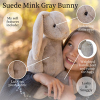 Hop into cozy comfort with the World's Softest Lushee 16 inch Suede Mink Bunny Plush Toy, including 1 ultra-soft bunny with floppy ears and timeless charm for soothing snuggles and heartfelt hugs. This 1-piece plush features luxuriously soft suede-like mink fabric in a gentle gray shade, sized perfectly at 16 inches. Crafted for cuddly comfort, it is a favorite for babies, toddlers, kids, and plush collectors. Its classic bunny design and generous size make it perfect for playtime, bedtime, or as a cheerful nursery accent. Parents love the child safe quality and durable construction for lasting hugs. 🐰 Includes 1 Plush Bunny – Elegant gray bunny with classic design and soft ears 🧸 Ultra-Soft Suede Plush – Made for comforting cuddles and quiet moments 🌟 Large 16 Inch Size – Ideal for nurseries, beds, and cozy corners 🛡️ Safe & Durable – Child-safe stitching and soft, hug-tested materials 🎁 Year-Round Gifting Favorite – A holiday gifting favorite 💤 Calming Companion – Perfect for bedtime routine.